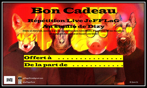 Acquérir un CD, un T-Shirt ou offrir un Bon K-do JeFFLaG, c'est un peu comme mettre un bulletin de vote dans une urne sur lequel il y aurait d'écrit : " Je vote pour le monde réel, pour l'authenticité, pour les relations humaines, pour un monde dans lequel on se parle même si on ne partage pas le même point de vue tout le temps !!"...